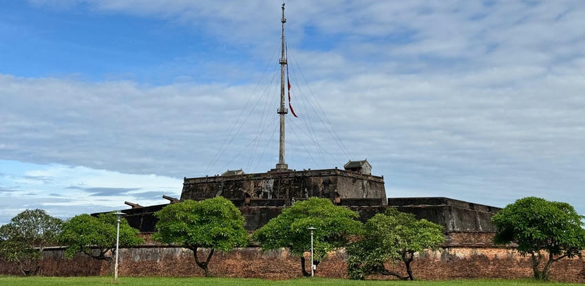 Cờ rủ trên cột cờ Phu Văn Lâu, Kỳ đài Huế (Ảnh: Báo Thừa Thiên Huế)