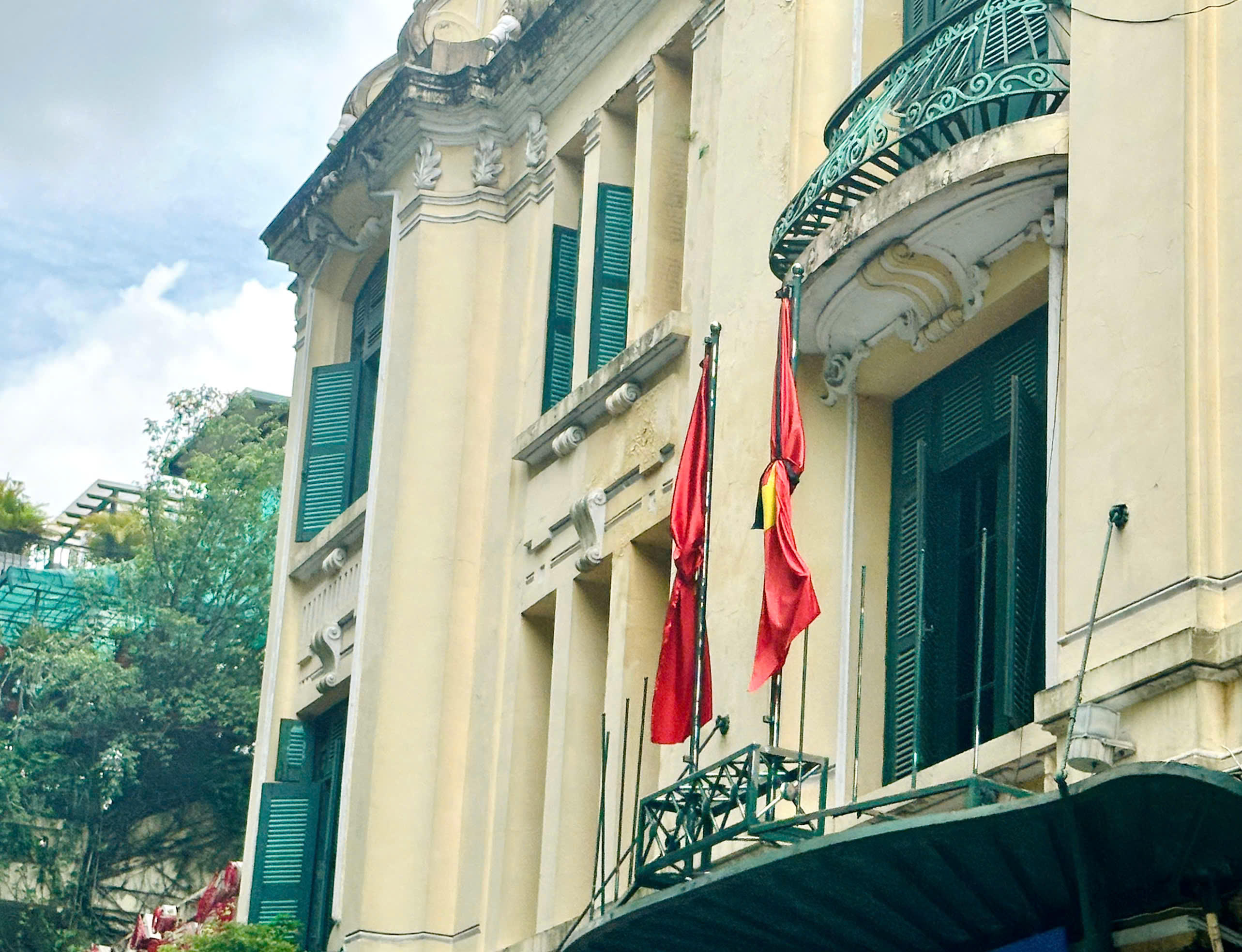 Tại một trụ sở nằm trên đường Lê Duẩn (Quận 1, TP HCM) những lá cờ Đảng, cờ Tổ quốc gắn dải băng đen để tưởng nhớ Tổng Bí thư Nguyễn Phú Trọng (Ảnh: Báo Thanh Niên)