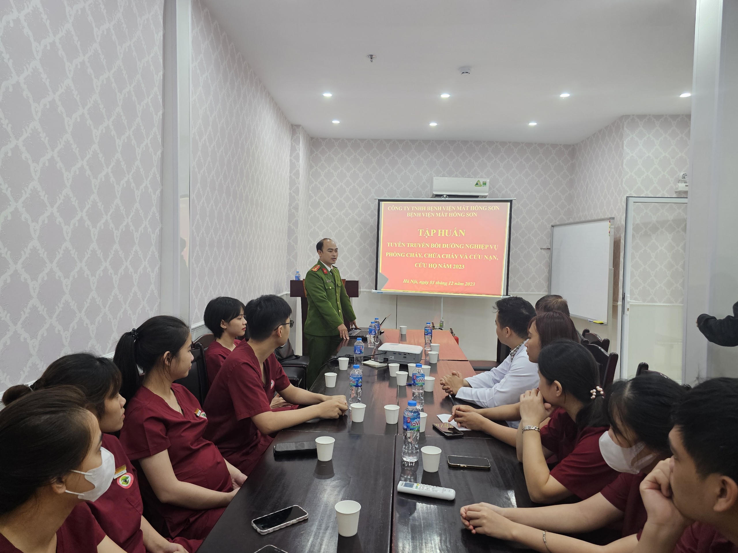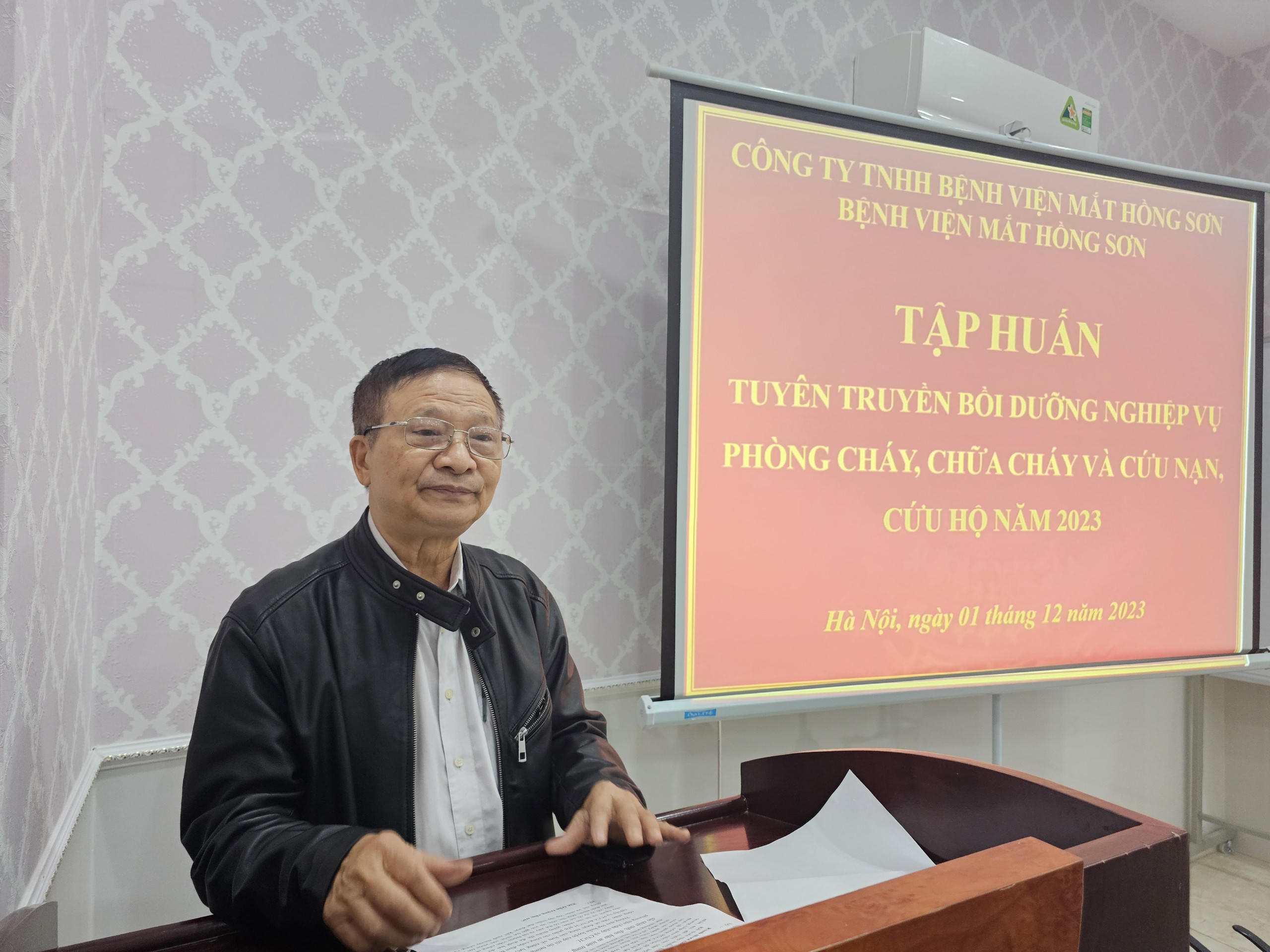 Phát biểu khai mạc lớp tập huấn, ông Võ Văn Phi – Giám đốc Bệnh viện Mắt Hồng Sơn cho biết, với phương châm “Tích cực phòng cháy, sẵn sàng chữa cháy có hiệu quả”, Bệnh viện Mắt Hồng Sơn tổ chức bồi dưỡng nghiệp vụ về PCCC cho toàn thể cán bộ, công nhân viên của bệnh viện. Đây là một việc làm cần thiết và ý nghĩa, mục đích trang bị cho các cán bộ, công nhân viên những kiến thức cơ bản về phòng cháy chữa cháy; Kỹ năng thoát nạn khi có cháy, nổ xảy ra; Kỹ năng xử lý đám cháy của lực lượng tại chỗ; Kỹ năng sử dụng các phương tiện được trang bị tại cơ sở phục vụ cho chữa cháy và cứu nạn, cứu hộ...