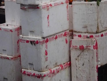 Theo quan sát của PV, tại chợ đầu mối Long Biên, hầu hết hàng nhập khẩu về là hàng Trung Quốc, bên ngoài bao bọc bởi các thùng xốp in chằng chịt chữ Trung Quốc.