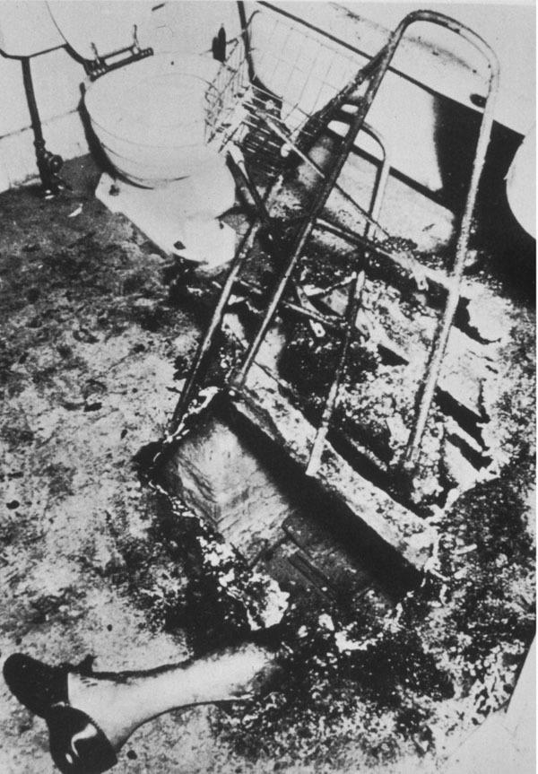 Phần thân trên của cô, cùng với các phần của chiếc ghế đã cháy rụi thành đống tro tàn. Tuy nhiên, đôi chân và phần còn lại của căn phòng vẫn nguyên vẹn.