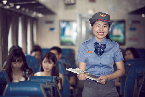| Tiếp viên được ví như “sứ giả mang hình ảnh ĐSVN gần với khách hàng” nên nụ cười là điều không thể thiếu trong hành trình hoả xa |