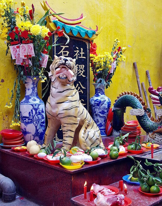 Theo các chuyên gia nghiên cứu văn hóa tín ngưỡng, tập tục diễn ra từ tháng Giêng và kéo dài cho đến đầu tháng Hai âm lịch, trong đó lễ chính là vào ngày vía thần Bạch Hổ. Bởi theo quan niệm dân gian của người Hoa, thần Bạch Hổ cũng là khắc tinh của “tiểu nhân”. Để linh ứng, tập tục “đánh kẻ tiểu nhân” phải được diễn ra trước khu vực thờ Bạch Hổ. Lễ vật cúng bao gồm thịt heo, huyết heo, trứng vịt (tất cả đều là thịt sống), rượu trắng… để dâng lên ngay khi thần Bạch Hổ mở miệng.