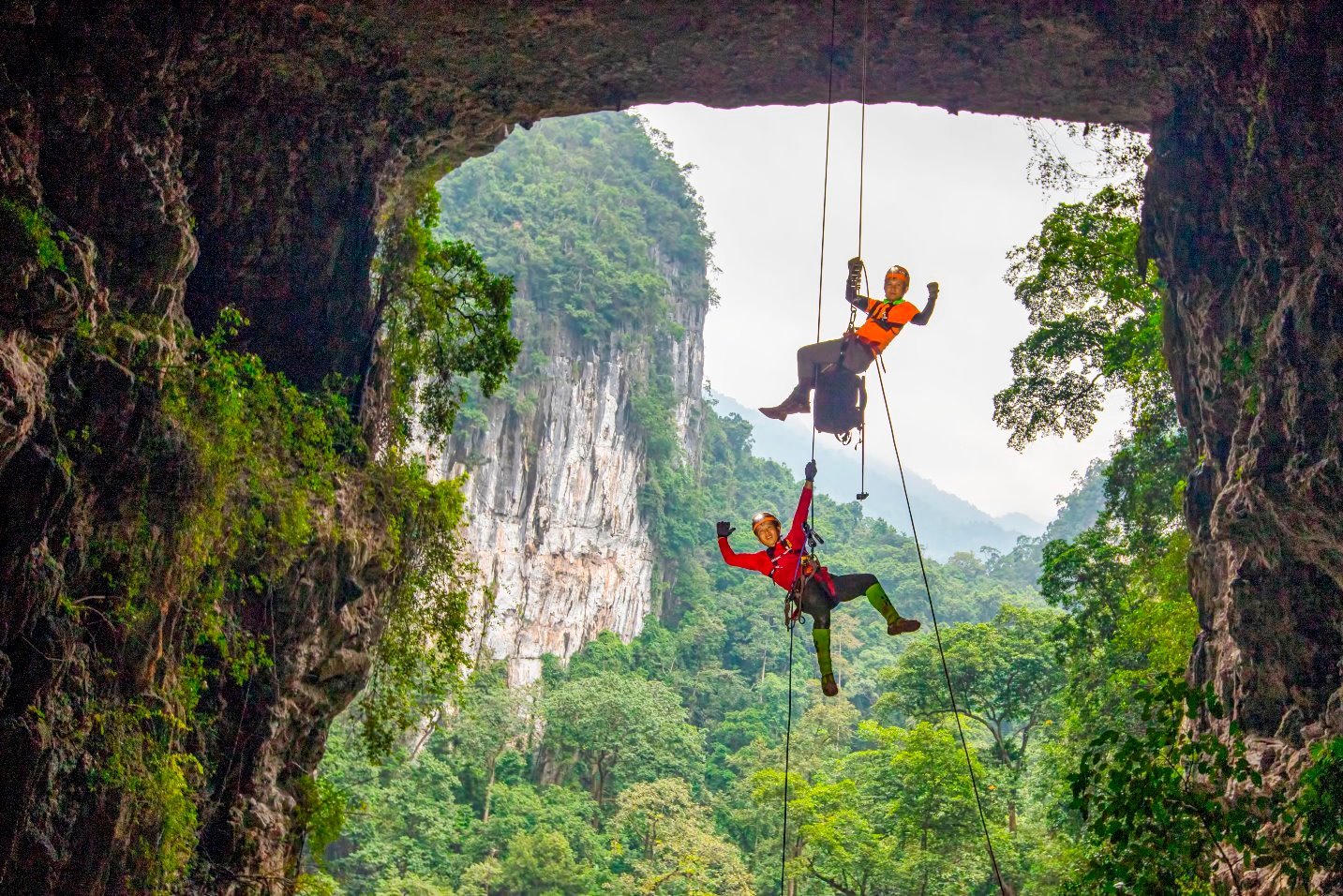 Đu dây mạo hiểm cực đại vào lòng hang Hổ đặc biệt thu hút du khách, để khai thác tour này thì các trợ lý an toàn và poter đóng vai trò rất quan trọng. |