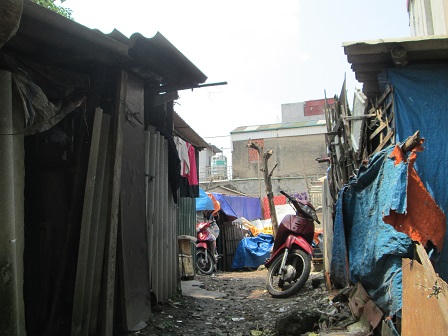 Dãy trọ gần dãy chị Hạnh thuê khung cảnh có phần tồi tệ hơn, tập trung chủ yếu là người Nam Định, Ninh Bình, Thái Bình. Dãy này có 30 phòng nhưng chỉ có 3 nhà tắm và nhà vệ sinh. Ngày này qua ngày khác lặp lại cảnh mọi người lũ lượt xếp hàng chờ đến lượt tắm vào chiều tối. Nhiều khi muốn đi vệ sinh, không đợi được, người ta đành… phóng uế luôn ra ngoài. Cũng vì thế, mùi hôi hám cứ phảng phất, nhưng vì không có tiền thuê chỗ khác, họ chấp nhận bám trụ ở đây.