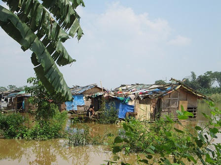 (PLO) - Gọi là phòng nhưng những căn phòng trong dãy nhà cho thuê của gia đình ông Điệp (phường Phúc Xá, Long Biên, Hà Nội) tồi tàn không bằng túp lều canh lúa ở quê. Phòng ghép từ các mảnh gỗ thừa, tấm lợp xi măng đã vỡ, không gian tối tăm, chật chội. Dãy nhà dựng chênh vênh bên mép sông Hồng khiến người ta dễ liên tưởng đến cảnh nhử mồi trước miệng hà bá…