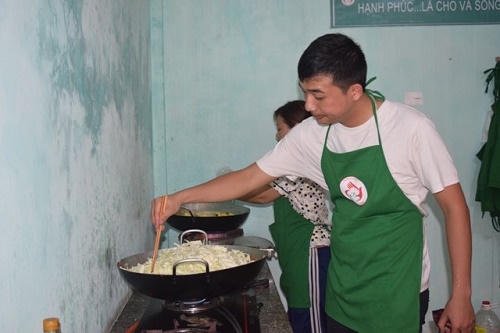 Vừa nhanh tay thái bắp cải để kịp xào, em Lương Thị Thu Hợp, sinh viên năm 3 Khoa sư phạm Toán, trường Đại học Quảng Bình tâm sự: “Em học buổi chiều nên sáng nào cũng đến quán phụ đi chợ, rửa đồ và nấu ăn cùng các bạn tình nguyện viên khác. Tối về em còn đi dạy thêm để trang trải cuộc sống, dù bận rộn nhưng em rất vui vì giúp được mọi người”.