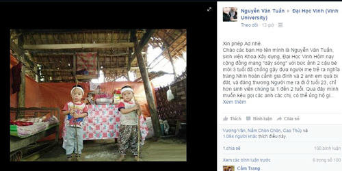 Hiện nay, trên các trang mạng xã hội facebook nhiều cá nhân, tổ chức đã chia sẻ hình ảnh về hai em để vận động giúp đỡ, ít nhiều sẽ giúp gia đình em vượt qua khó khăn trước mắt. Hai cháu Đức, Tuấn đang về sống với ông bà ngoại, và rất cần sự chung tay giúp đỡ của mọi cá nhân, tổ chức, nhà hảo tâm.
