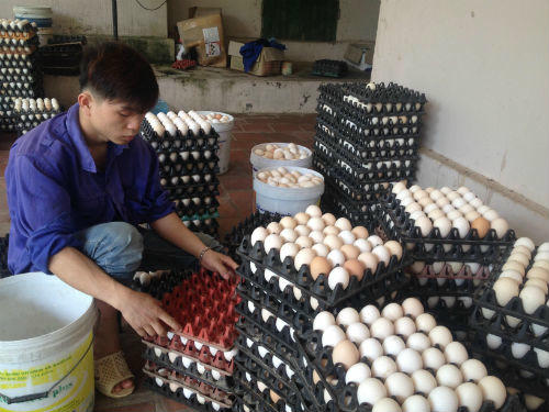 | Lượng trứng gà sản xuất ra hàng ngày từ trang trại của anh Bùi Đức Chính với giá chỉ từ 1.400 đồng/quả khiến người dân lo lắng. (Ảnh minh họa) |