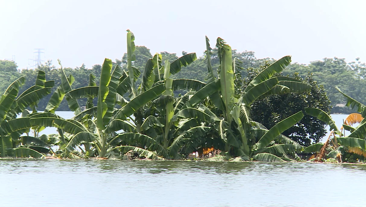 Hàng trăm ha lúa, rau màu, cây trồng, diện tích nuôi trồng thủy sản trên địa bàn huyện Quốc Oai bị ngập úng. |