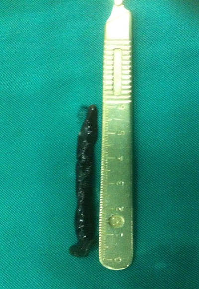 Bác sĩ Nguyễn Văn Giáp, Khoa Tai mũi họng, Bệnh viện Nhi tỉnh Thanh Hóa, cho biết vừa phẫu thuật gắp con đỉa lớn trong mũi bé Đỗ Duy Việt 28 tháng tuổi, ở xã Thạch Sơn, huyện Thạch Thành.