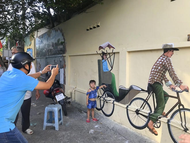 Ông Y tấm tắc: “Nhà nước làm con đường này tôi chịu nè. Vừa tái hiện Cần Thơ xưa vừa làm đẹp cho tuyến đường. Trước đây hai vách tường xập xệ, cũ kỹ lắm, người dân cũng không có ý thức nữa. Bây giờ đẹp thế này người dân cũng không dám xả rác bừa bãi. Đã vậy, chỗ này sẽ nhiều người đến tham quan, chụp hình chắc đông vui lắm”.