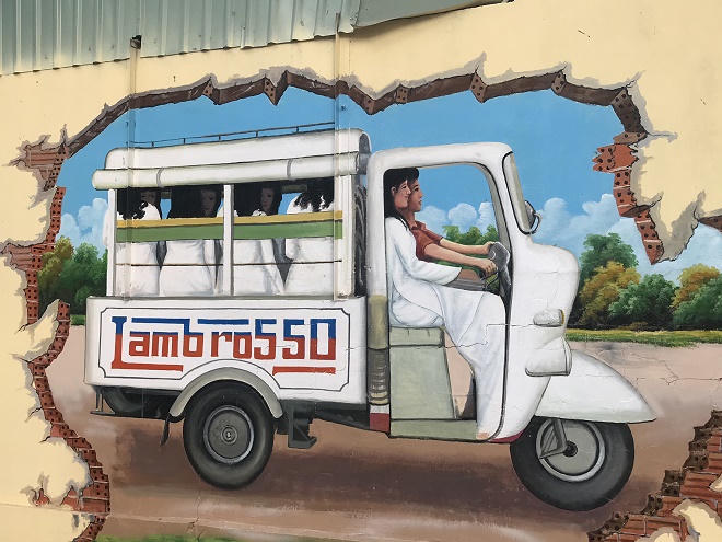 Hình ảnh những chiếc xe lam chở học sinh đến trường không khỏi làm nao lòng. Chiếc xe lôi máy, xe lôi đạp, những nét xưa nhà lồng cổ, hài hòa bên nét mới của Chợ nổi Cái Răng và cầu đi bộ duyên dáng uốn lượn khoe bóng dưới dòng sông Cần Thơ.