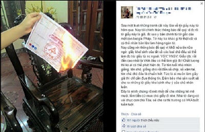 Anh Nguyên Vũ, một người nuôi chó cảnh từng công khai về giấy tờ giả của chó trên Facebook đăng tải: “Sau một loạt những tranh cãi nảy lửa về giấy tờ của chó, nay tôi chính thức thông báo với quý vị được rõ: Giấy tờ tôi đang sở hữu là giả, được sao y bản chính từ tờ gốc của một con Becgie Pháp. Tờ này không khác gì một tờ giấy thật cả và có thể nhân bản lên làm hàng ngàn tờ. Để quý vị khỏi nửa tin nửa ngờ: Giấy khai sinh của tất cả các loại chó đều có thể làm được trừ giấy từ nước ngoài. VSV; VNSV; giấy CLB; rồi đến cao nhất là VKA đều có thể làm giả được! Chất lượng thì không ai có thể phát hiện được”.