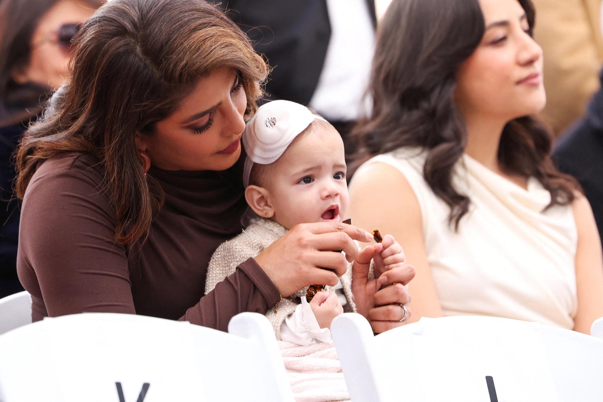 | Gây chú ý trong buổi lễ là vợ của Nick Jonas - Hoa hậu Thế giới Priyanka Chopra cùng cô con gái Malti. Ảnh: REUTERS. |