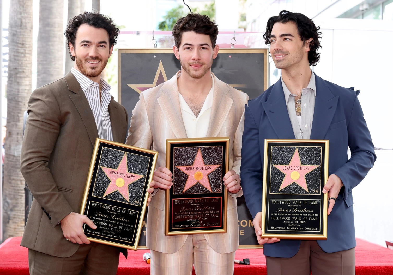 | Tham dự buổi lễ gắn sao có vợ và con của ba anh em nhà Jonas. Ảnh: Getty Images. |