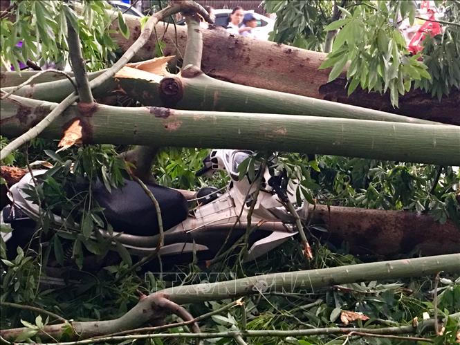 Nghiêm trọng nhất, tại đường ven Hồ Tây đối diện Khách sạn Công đoàn, một cây si lớn đã đổ trúng một nam thanh niên điều khiển xe máy khiến nạn nhân tử vong tại chỗ.