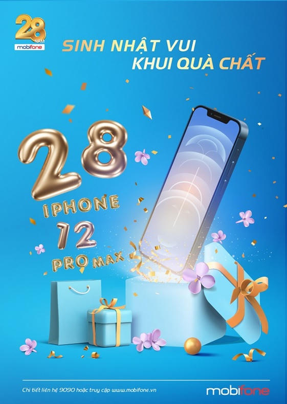 (PLVN) - Miễn phí data tốc độ cao trong 7 ngày; chơi game vui, rinh dế xịn (iPhone 12 pro max, iPhone 11) cùng hàng ngàn phần quà hấp dẫn khác chính là những ưu đãi cực lớn nhà mạng MobiFone dành tặng khách hàng mừng sinh nhật lần thứ 28.