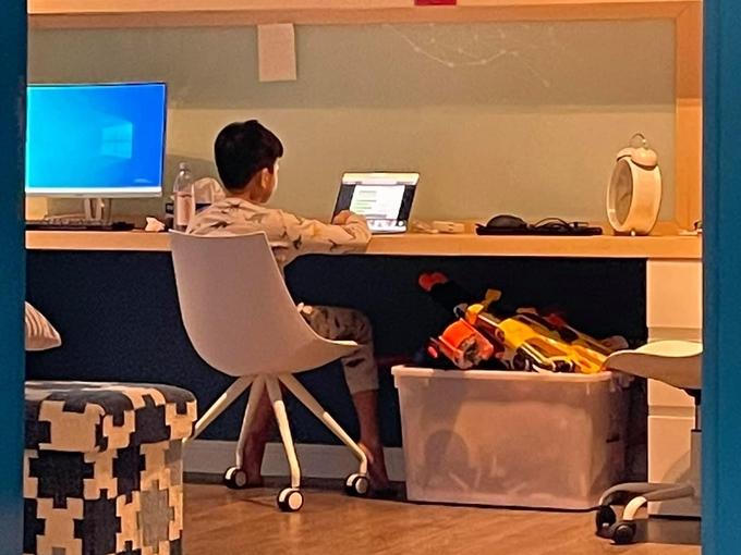 Gia đình Lý Hải đang tránh dịch ở nông trại thuộc Đà Lạt. Vợ chồng anh cố gắng chuẩn bị laptop và từng khu vực riêng cho các con học online khi bước vào năm học mới.