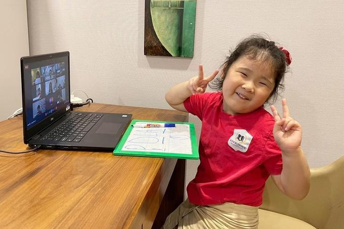 Bé út Polar tròn 5 tuổi, chưa chính thức học online nhưng cũng được làm quen với thầy cô, bạn bè qua camera. Cô bé rất hào hứng vì được gặp nhiều bạn mới, thỏa thích nhún nhảy. Ngắm nhìn con gái yêu vừa học vừa chơi, Hương Giang bày tỏ niềm hạnh phúc.