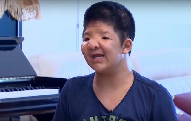 Nguyễn Anh Tuấn năm nay 15 tuổi, mắc bệnh APERT (bệnh xương cứng sớm cục bộ) bẩm sinh khiến các ngón tay ngón chân dính nhau, xương sọ bị cốt hóa sớm... Em đã cùng cha mẹ trải qua 15 năm ròng rã với nhiều ca phẫu thuật, trong đó có cả những ca đại phẫu cưa xương sọ.