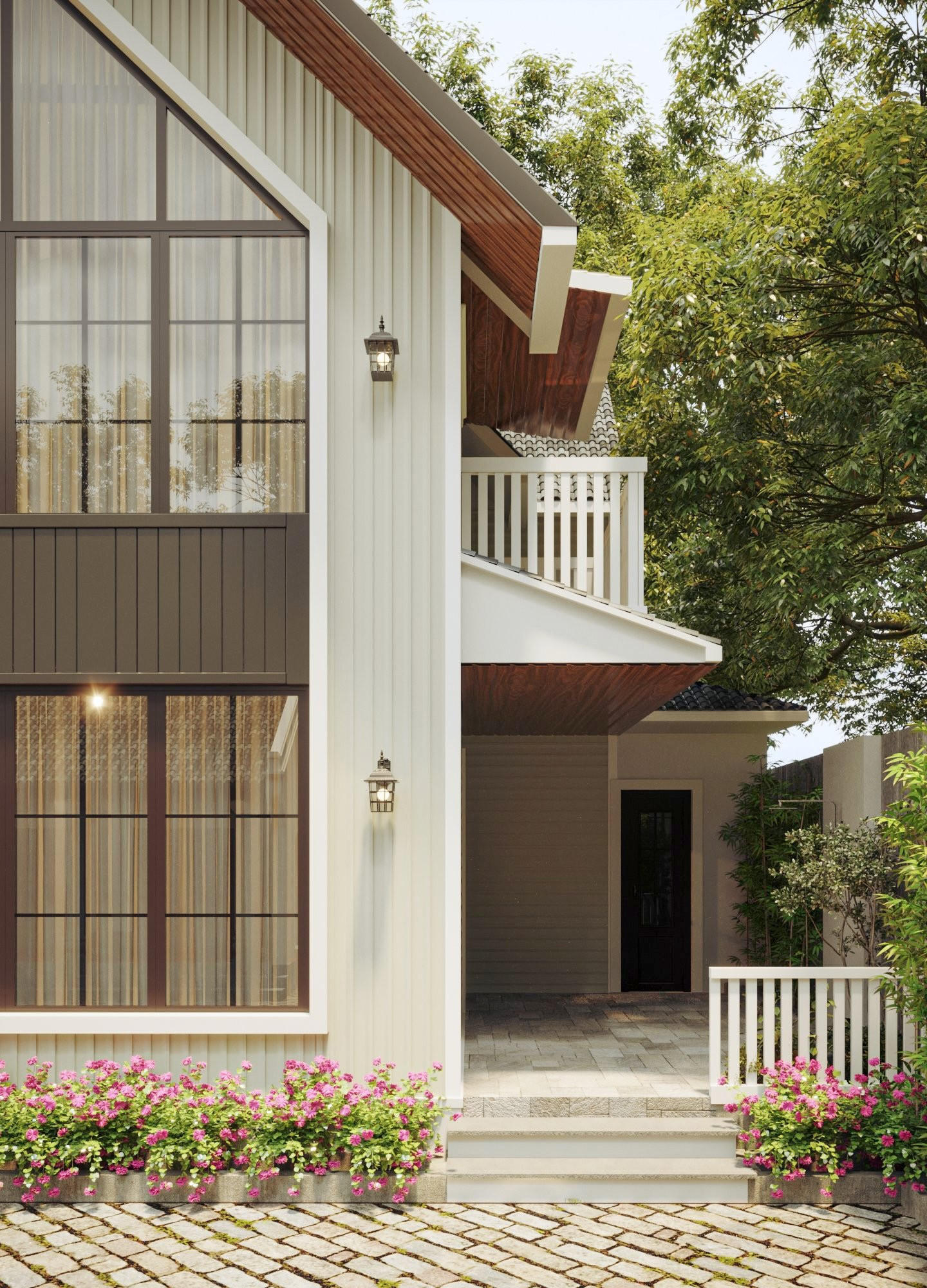 Nhà thờ, sân vườn thiết kế hài hòa với nhà chính, gia chủ muốn không gian riêng và an toàn, thích kín cổng cao tường. |