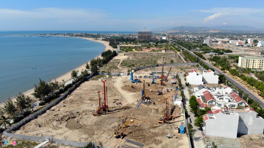 Khi condotel bùng nổ, nhiều địa phương vốn không phát triển du lịch biển cũng bắt đầu thu hút những dự án. Điển hình như Quảng Bình, Phú Yên, Bình Định, Ninh Thuận... Trong hình là một dự án condotel đang được xây dựng ở Ninh Thuận với hàng nghìn căn mở bán.