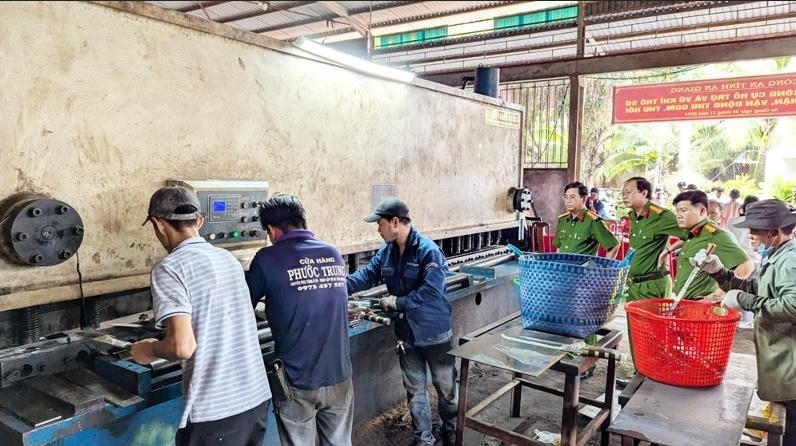 Sau khi kiểm tra, phân loại, 300 loại công cụ hỗ trợ, 124 vũ khí thô sơ, linh kiện lắp ráp vũ khí, công cụ hỗ trợ, trên 5kg đạn bi sắt và 3 hộp đạn chì… được tiêu hủy theo đúng quy trình, bằng cách sử dụng máy công nghiệp dập nát và máy cắt kim loại để cắt nhỏ nhằm làm mất tính năng, tác dụng của số công cụ hỗ trợ, vũ khí thô sơ; đồng thời đảm bảo an toàn, hạn chế ảnh hưởng đến môi trường và theo đúng quy định.