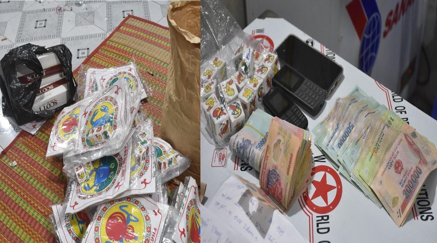 Tại hiện trường, lực lượng Công an tạm giữ: 85 bộ bầu cua cá cọp, 120 hột lắc bầu cua, 07 bộ bài tây, 11 điện thoại di động, số tiền trên 120 triệu đồng và một số tang vật khác có liên quan.