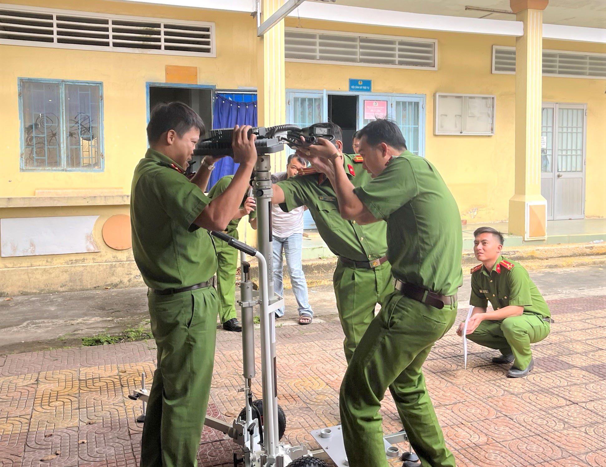 Ngoài ra, trong đợt này Công an tỉnh cũng trang cấp cho các Đội Kỹ thuật hình sự Công an cấp huyện nhiều thiết bị có công nghệ hiện đại vừa được Bộ Công an phân bổ như: Valy khám nghiệm hiện trường tổng hợp; máy ảnh kỹ thuật số; hệ thống đèn chiếu sáng, bộ đèn led đa phổ, hệ thống led lập mô hình hiện trường chuyên dụng phục vụ khám nghiệm hiện trường…