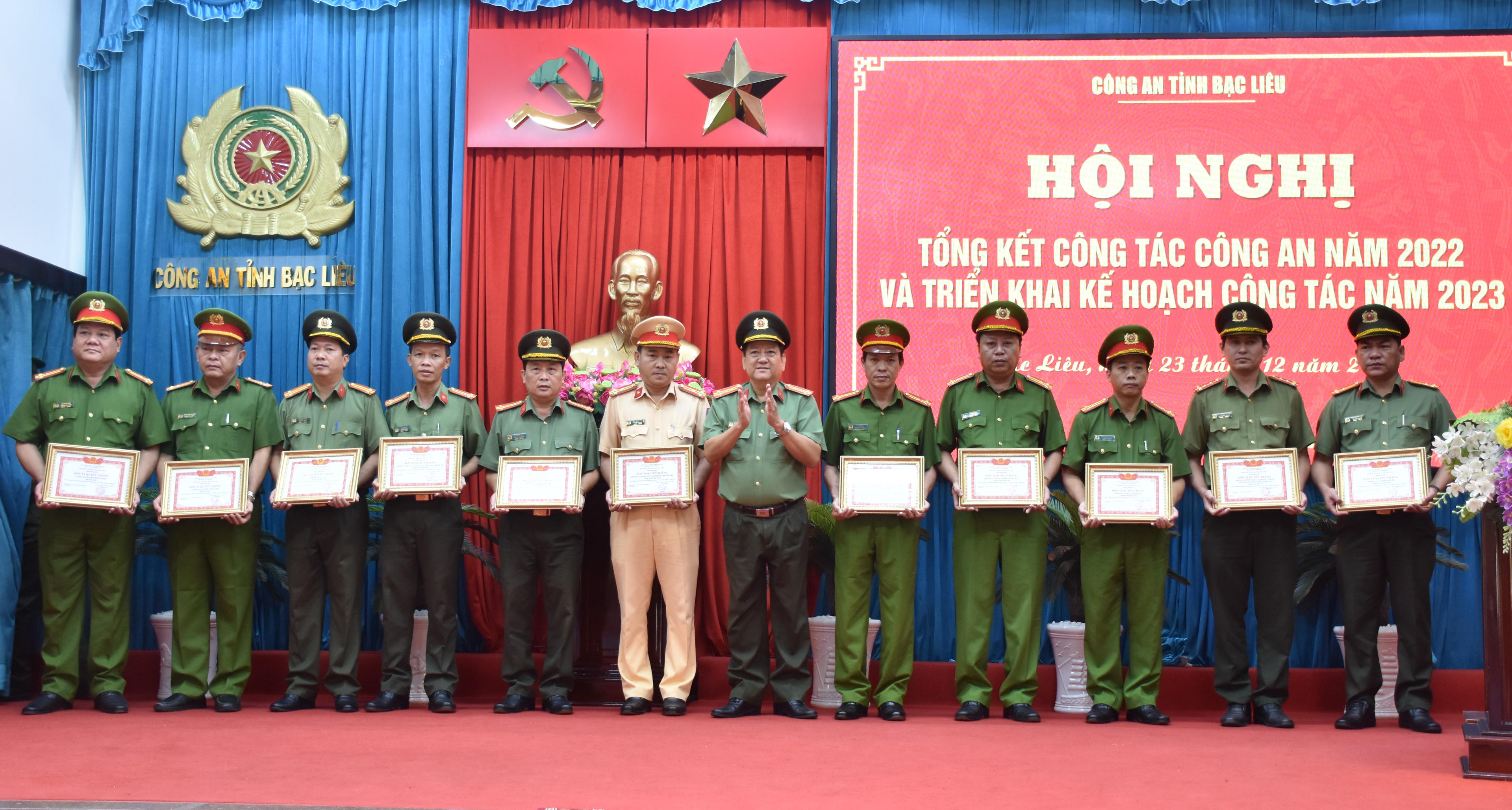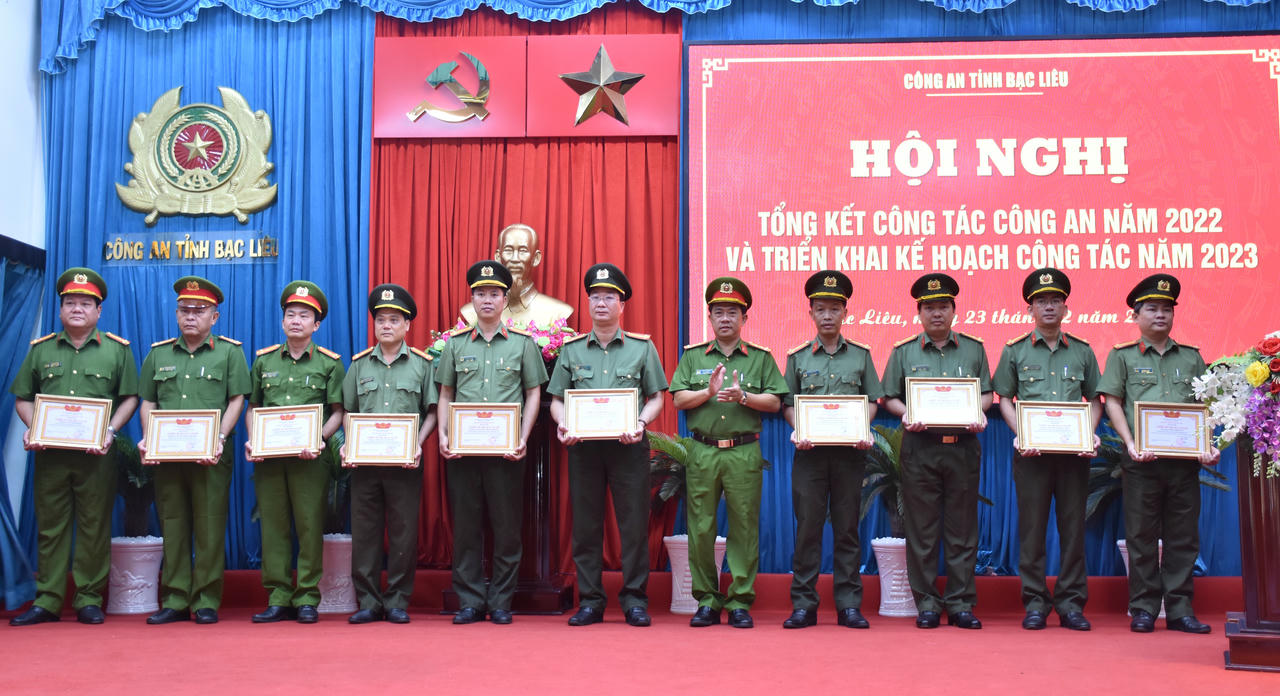 Với thành tích đạt được, năm 2022, có nhiều tập thể, cá nhân của Công an tỉnh Bạc Liêu được Đảng, Nhà nước, Bộ Công an ghi nhận và tặng nhiều phần thưởng cao quý. Cụ thể, Công an tỉnh Bạc Liêu vinh dự được Chủ tịch nước tặng Huân chương Bảo vệ Tổ quốc hạng Nhì có thành tích xuất sắc trong thực hiện dự án Cơ sở dữ liệu quốc gia về dân cư và dự án Sản xuất, cấp, quản lý CCCD; Huân chương Chiến công hạng Ba có thành tích xuất sắc trong công tác phòng chống dịch Covid-19. Chủ tịch nước tặng Huân chương Bảo vệ Tổ quốc hạng Nhì cho 01 cá nhân; Huân chương Bảo vệ Tổ quốc hạng Ba cho 12 cá nhân; Thủ tướng Chính phủ tặng Bằng khen cho 04 cá nhân; Bộ Công an tặng Bằng khen cho 53 tập thể, 93 cá nhân; các ngành tặng kỷ niệm chương cho 399 cá nhân. Tổng kết phong trào thi đua “Vì an ninh Tổ quốc” năm 2022, có 04 đơn vị gồm: Phòng Tham mưu, Phòng An ninh nội địa, Văn phòng Cơ quan Cảnh sát điều tra, Công an thành phố Bạc Liêu vinh dự được Bộ Công an tặng Cờ thi đua.