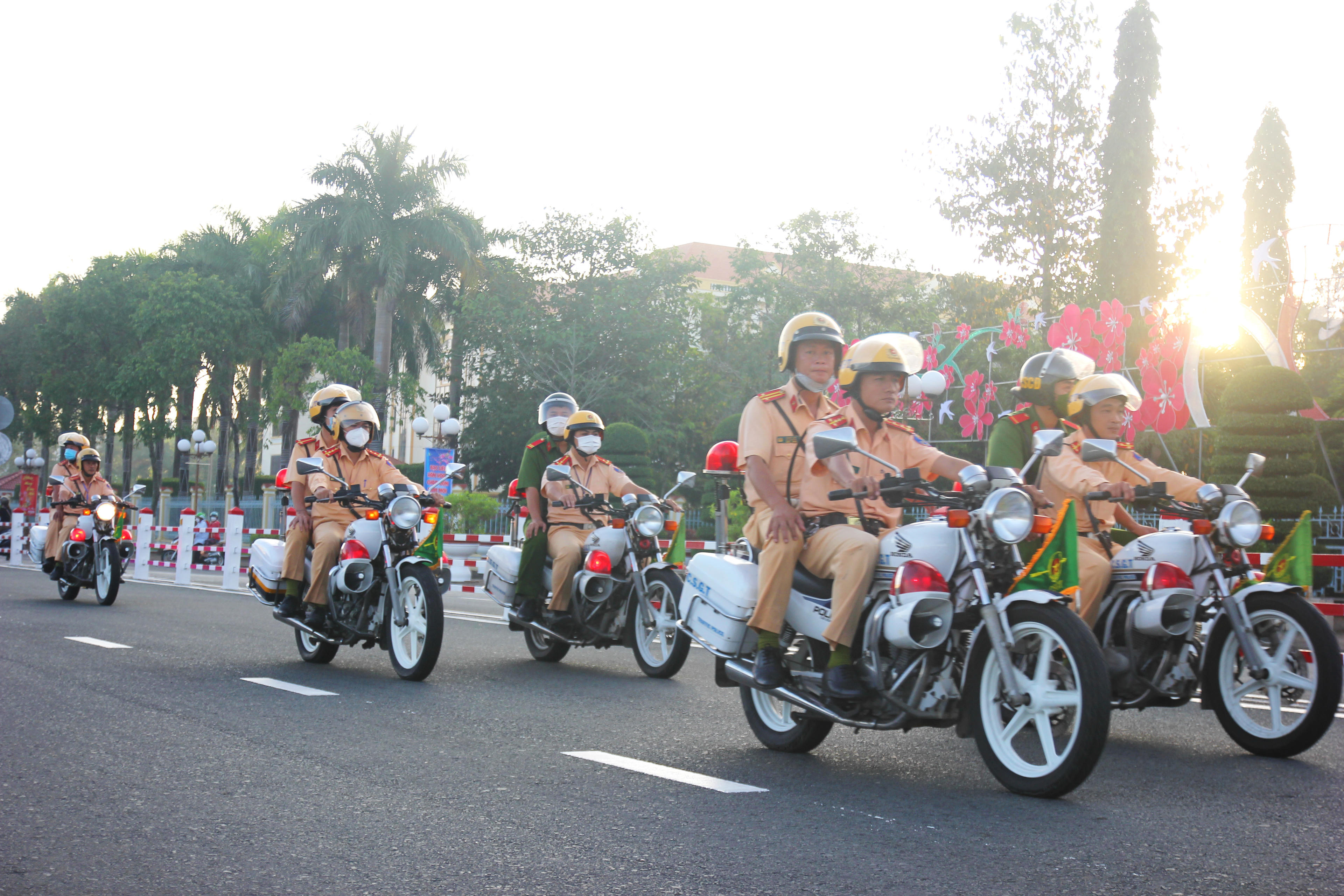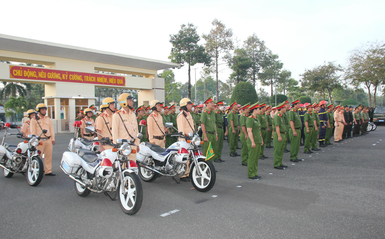 Công an Bạc Liêu ra quân để bảo đảm an toàn trật tự Tết Nguyên đán 2023. |