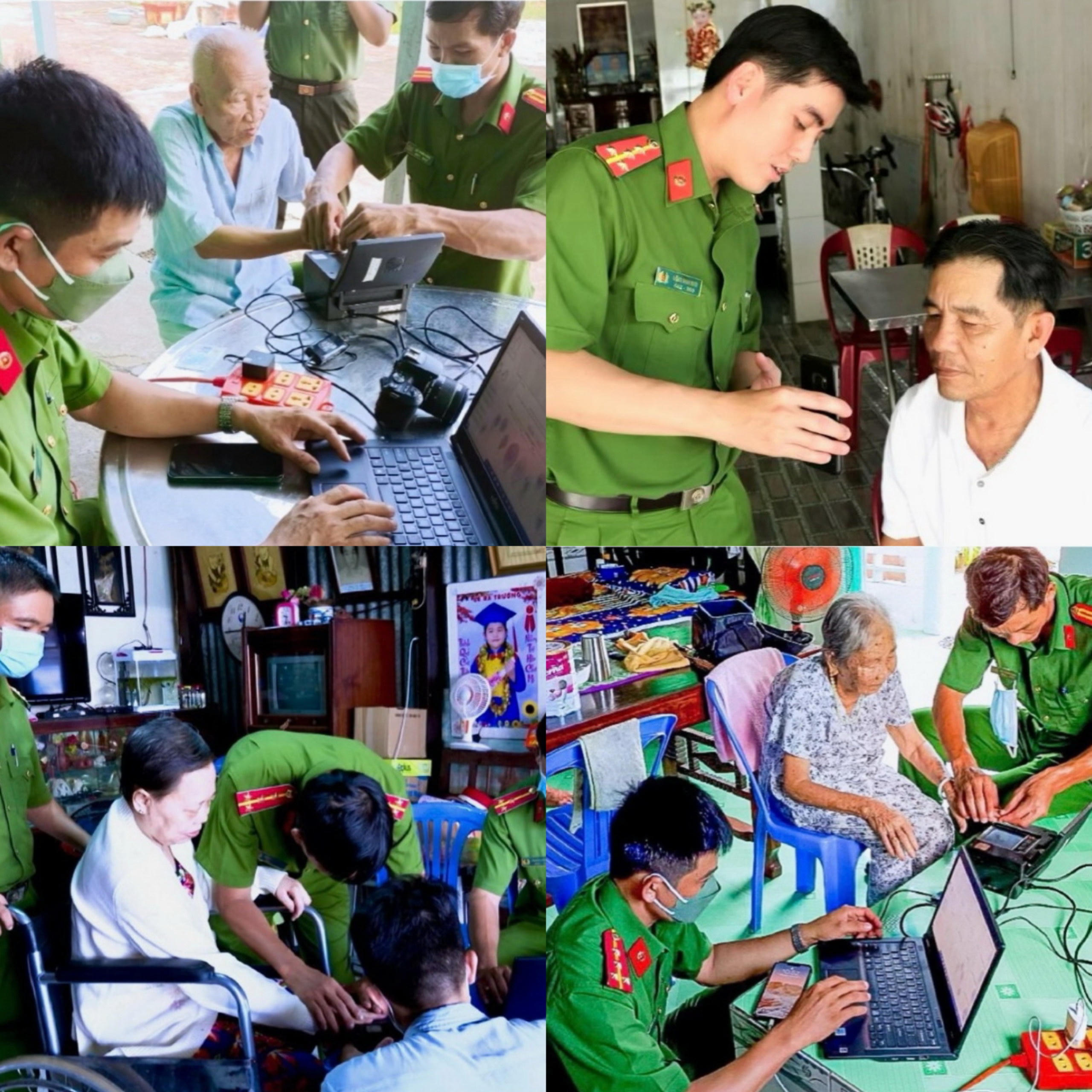 Lực lượng Công an Bạc Liêu “đi từng ngõ, gõ từng nhà” để làm hồ sơ cho người già, người khuyết tật… làm CCCD. |