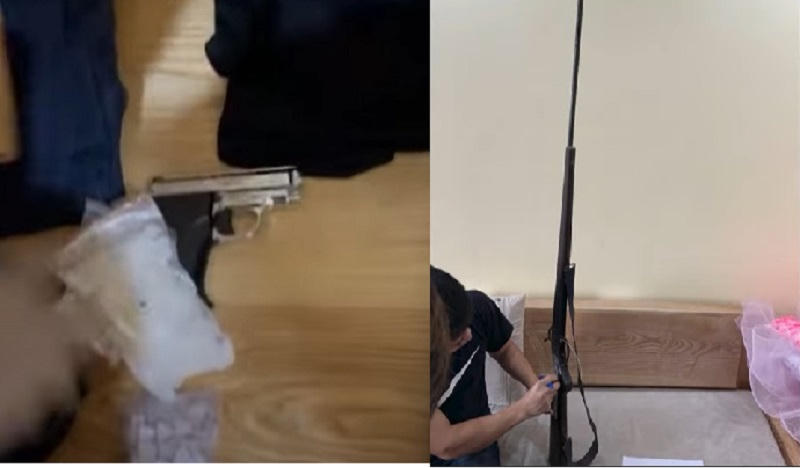 Lực lượng chức năng thu giữ được 2 khẩu súng tại nhà của 2 đối tượng. (Ảnh: CACC) |
