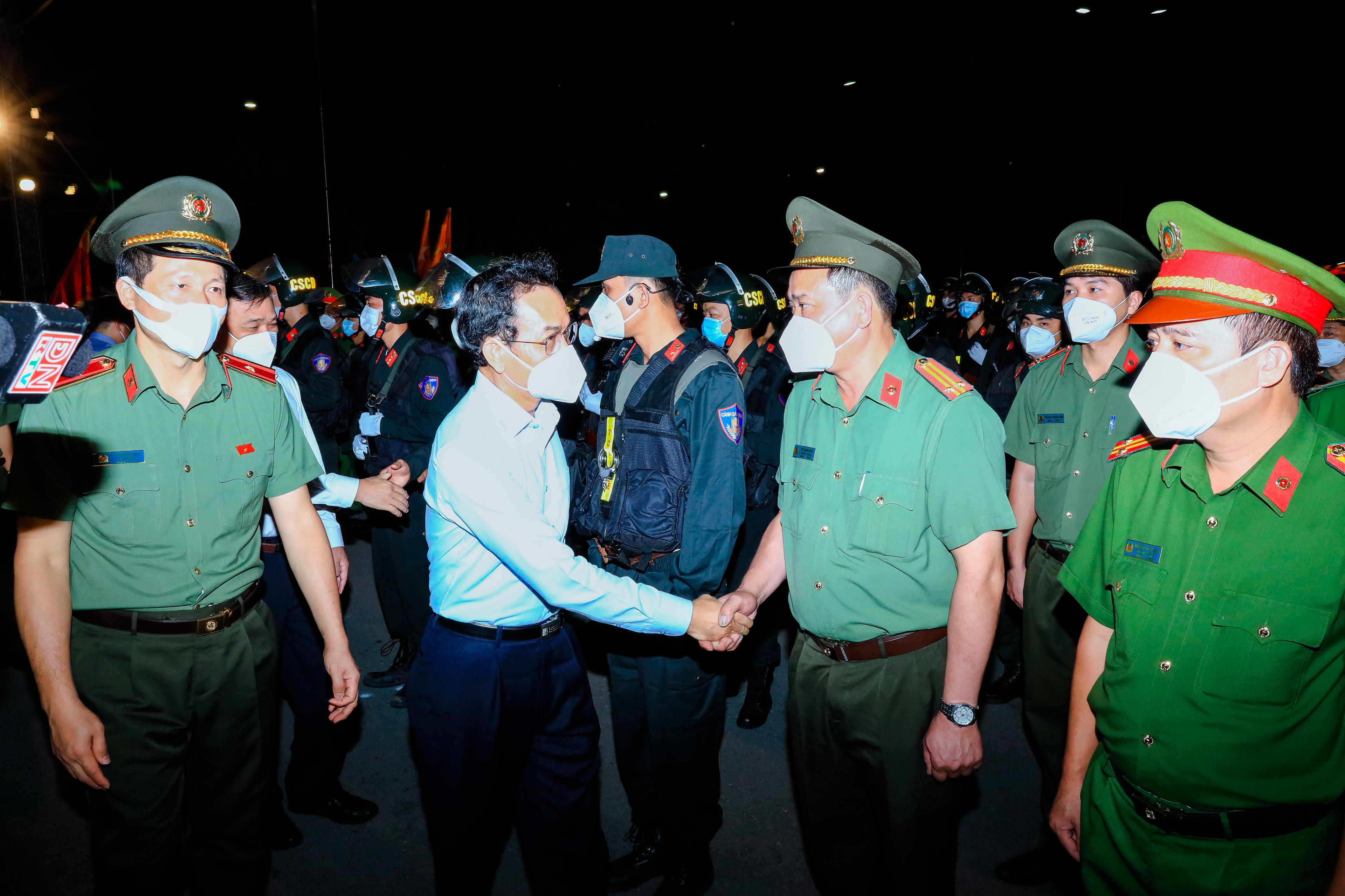 Lực lượng Công an ra quân thực hiện nhiẹm vụ trong đêm . |