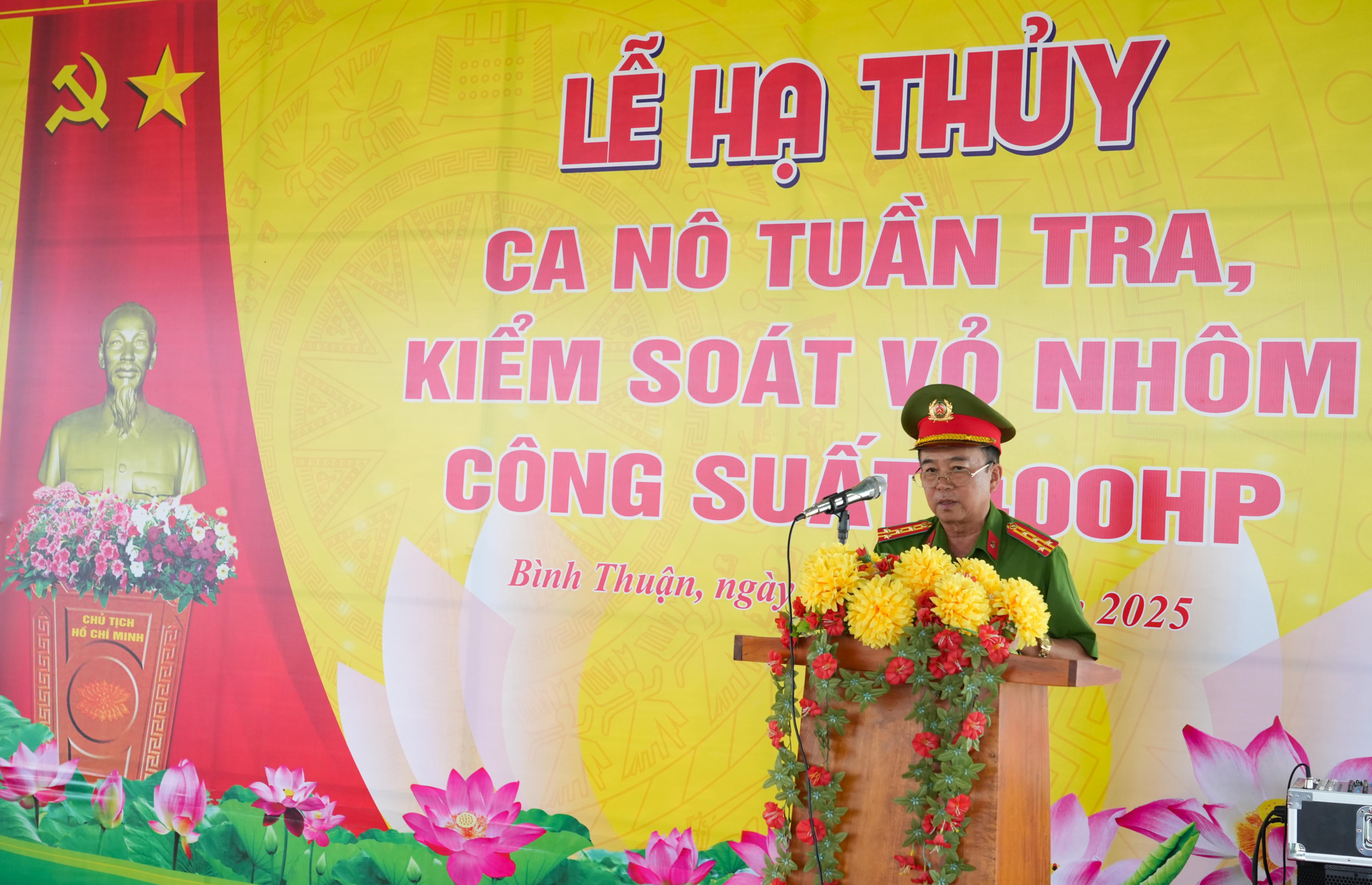 (PLVN) - Sáng 16/4, Đại tá Đinh Kim Lập – Phó Giám đốc Công an tỉnh Bình Thuận đã chủ trì lễ hạ thủy ca nô tuần tra, kiểm soát vỏ nhôm công suất 400 mã lực (HP), vùng hoạt động cấp SB.