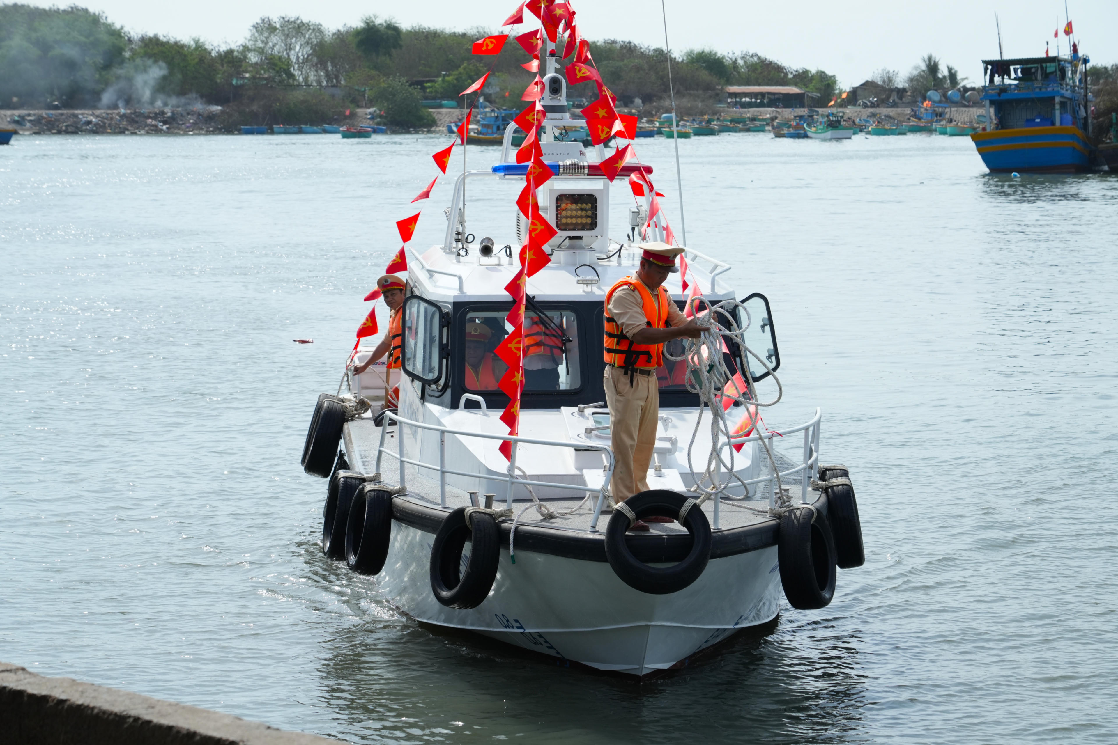 Công an Bình Thuận hạ thủy ca nô tuần tra, kiểm soát vỏ nhôm công suất 400 mã lực