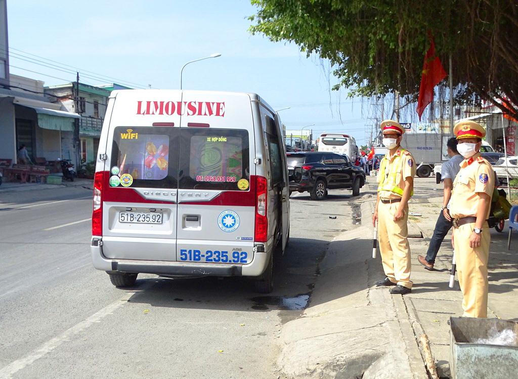 Lực lượng Cảnh sát giao thông kiểm soát các phương tiện và người đi, người đến địa bàn tỉnh để phòng, chống dịch COVID-19. |