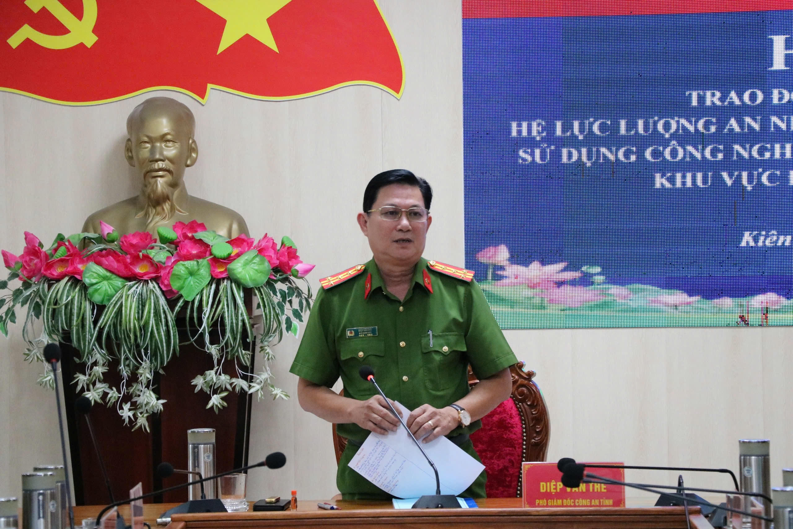 Đại tá Diệp Văn Thế - Phó Giám đốc Công an tỉnh Kiên Giang nhấn mạnh tầm quan trọng của việc nâng cao năng lực chuyên môn cho cán bộ chiến sĩ trong bối cảnh tội phạm công nghệ cao đang ngày càng tinh vi, phức tạp.
