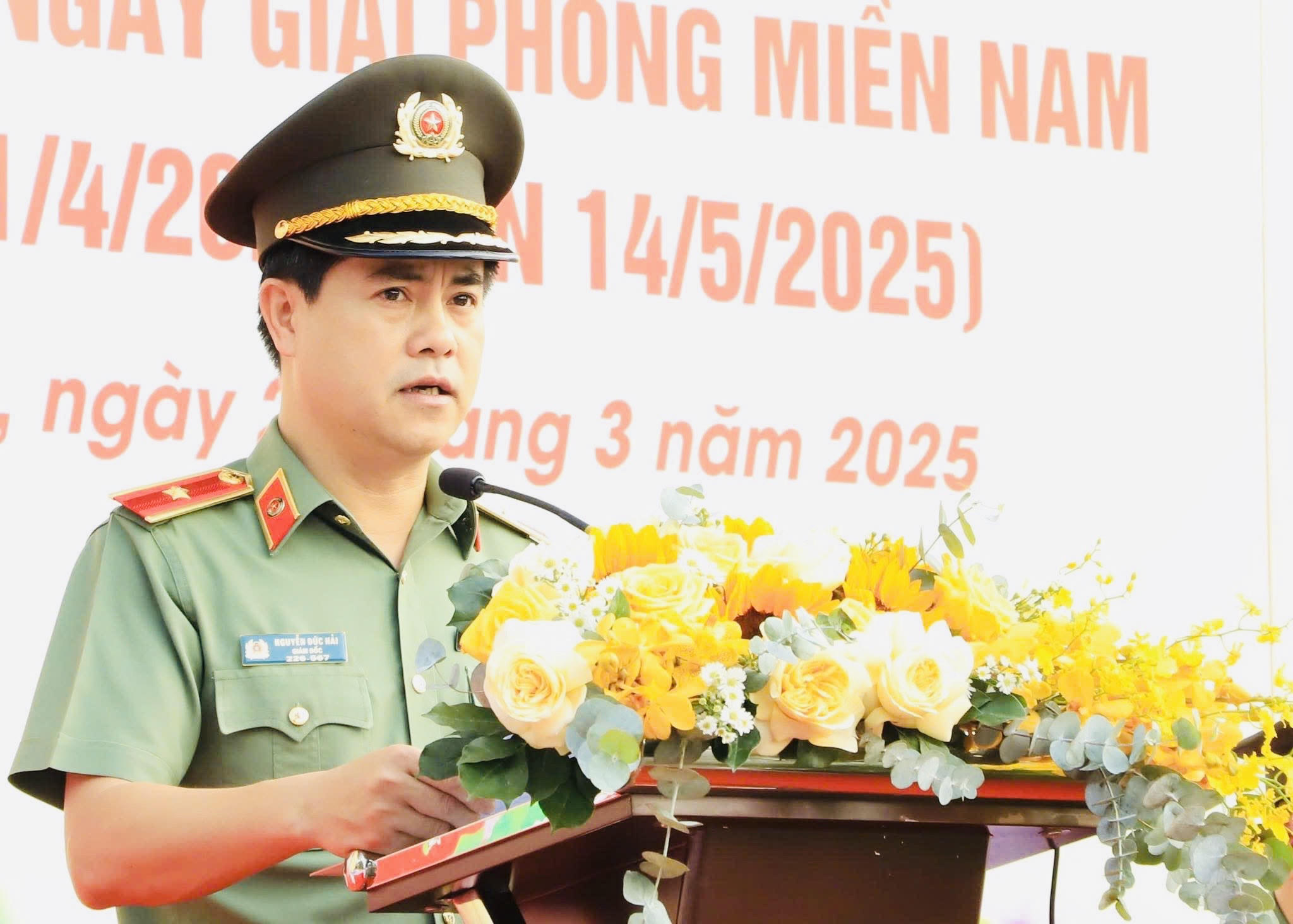 Thiếu tướng Nguyễn Đức Hải, Giám đốc Công an tỉnh Đồng Nai phát lệnh ra quân cao điểm tấn công, trấn áp tội phạm bảo đảm ANTT dịp kỷ niệm 50 năm Ngày Giải phóng Niềm Nam, thống nhất đất nước. |