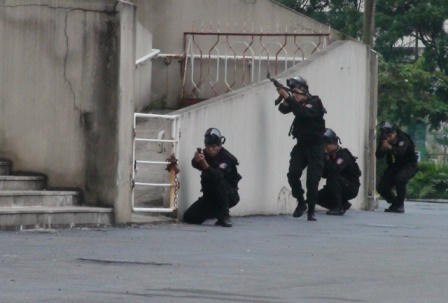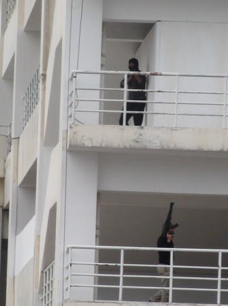 đang giam giữ con tin tại 1 tòa nhà cao tầng
