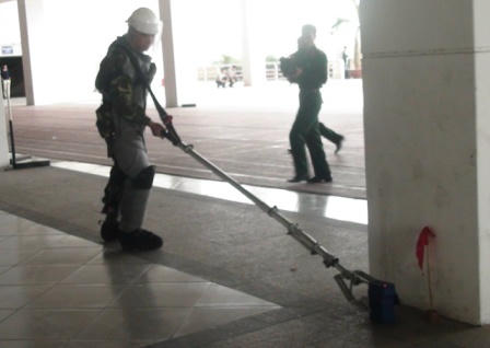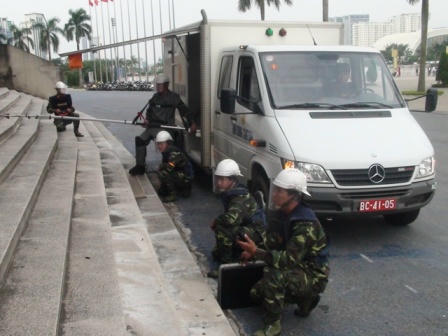 Lực lượng công bị được điều động đến hiện trường để xử lý bom mìn