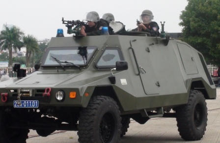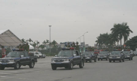 Xe chở lực lượng Cảnh sát cơ động làm nhiệm vụ
