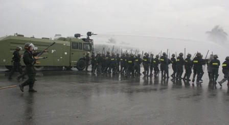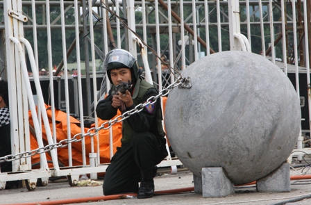 Lực lượng cảnh sát cơ động vào vị trí sắn sàng chiến đấu