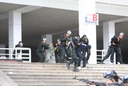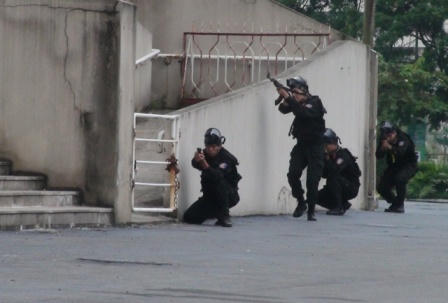 (PLO) - Nằm trong chương trình diễn tập khu vực phòng thủ (KVPT) năm 2013 của Thành phố Hà Nội (HN- 13), chiều 15/11/2013 Công an Hà Nội đã tổ chức diễu hành biểu dương lực lượng và diễn tập chống bạo loạn, chống khủng bố, giải cứu con tin