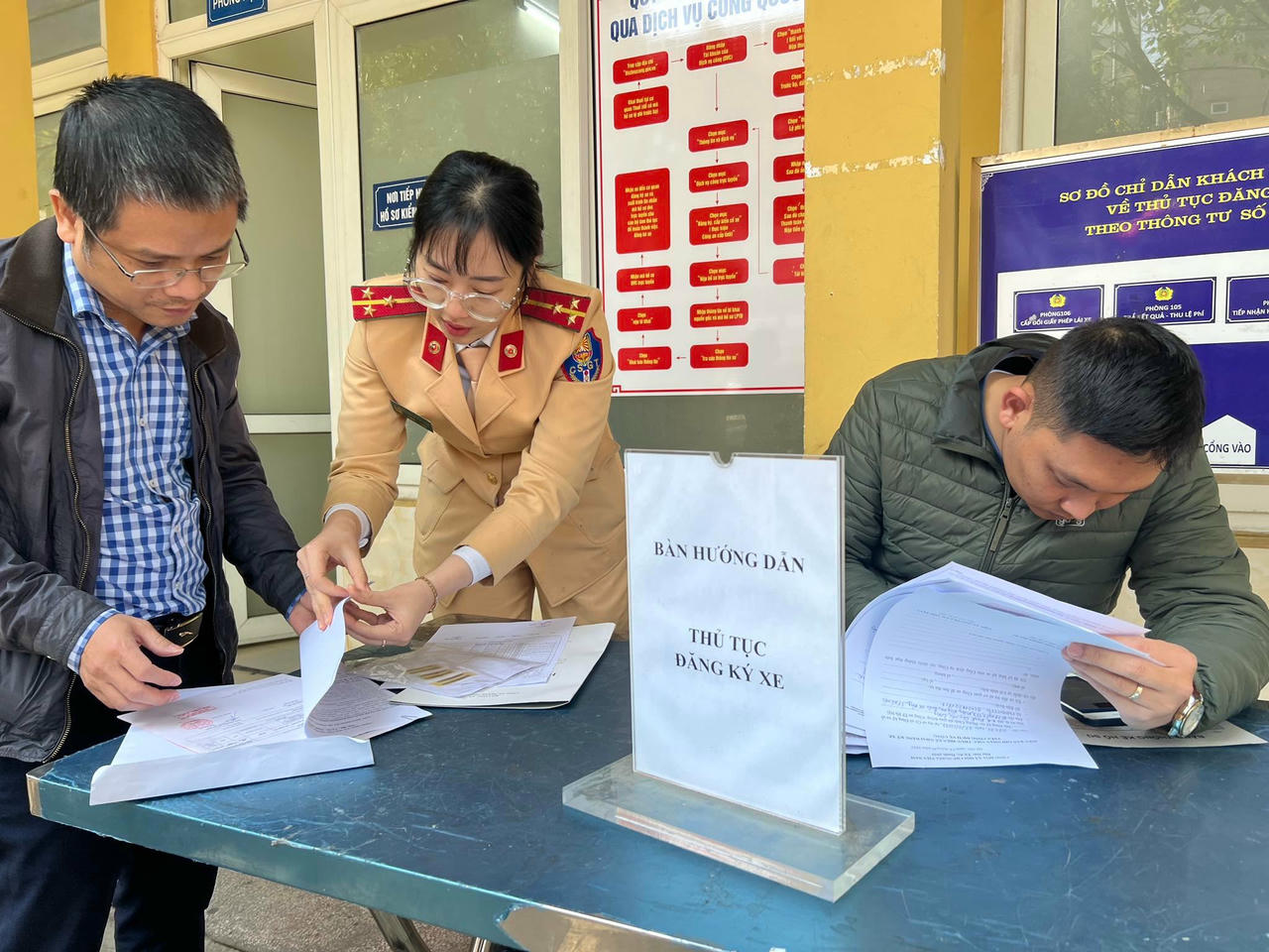 Trung tá Nguyễn Minh Thuý, phó Đội trưởng Đội đăng ký và quản lý phương tiện, Phòng Cảnh sát giao thông cho biết thêm, Việc đăng ký xe đã triển khai 100% cổng thông tin dịch vụ công Quốc gia, chủ phương tiện đến cơ sở đăng ký xe chỉ cung cấp mã hồ sơ đăng kí. Cán bộ đăng kí xe sẽ in bản khai trên dịch vụ công cho chủ phương tiện, rồi dán bản cà số khung, số máy và bấm biển số, thời gian chỉ mất khoảng 3-5 phút.