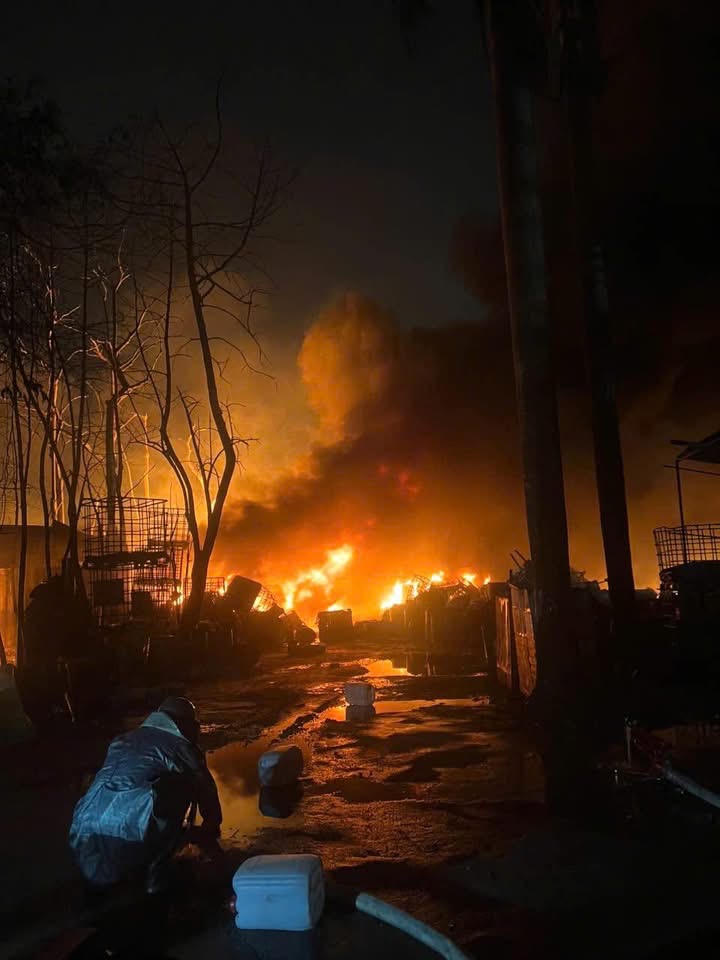 Tại hiện trường, đám cháy xuất phát từ khu vực bãi chứa dầu thải, có nhiều vật liệu dễ cháy, sinh ra khói, khí độc, nhiệt lượng lớn, gây khó khăn cho công tác tiếp cận và triển khai đội hình chữa cháy. Chỉ huy chữa cháy đã chỉ đạo các mũi trinh sát tổ chức tìm kiếm người bị nạn, đồng thời khoanh vùng, khống chế không để cháy lan. Các lực lượng phối hợp tổ chức phân luồng giao thông, bảo đảm an ninh trật tự, phục vụ công tác chữa cháy.