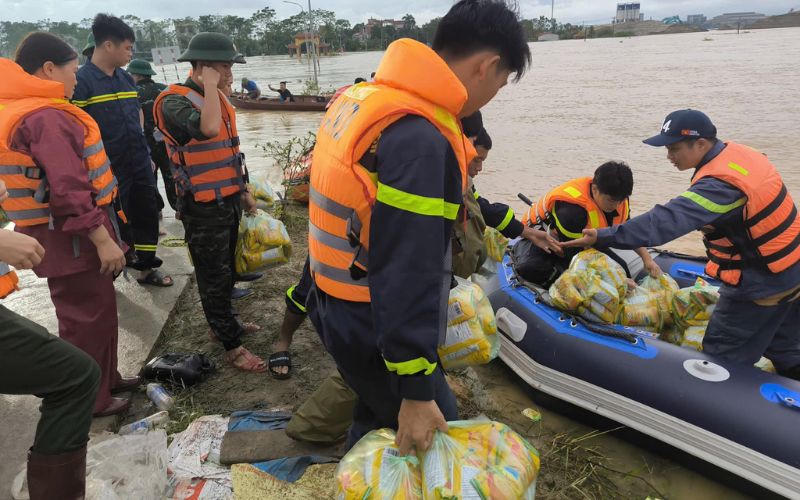 Lực lượng Công an tỉnh Vĩnh Phúc vận chuyển nhu yếu phẩm tới các hộ dân bị nước lũ cô lập.