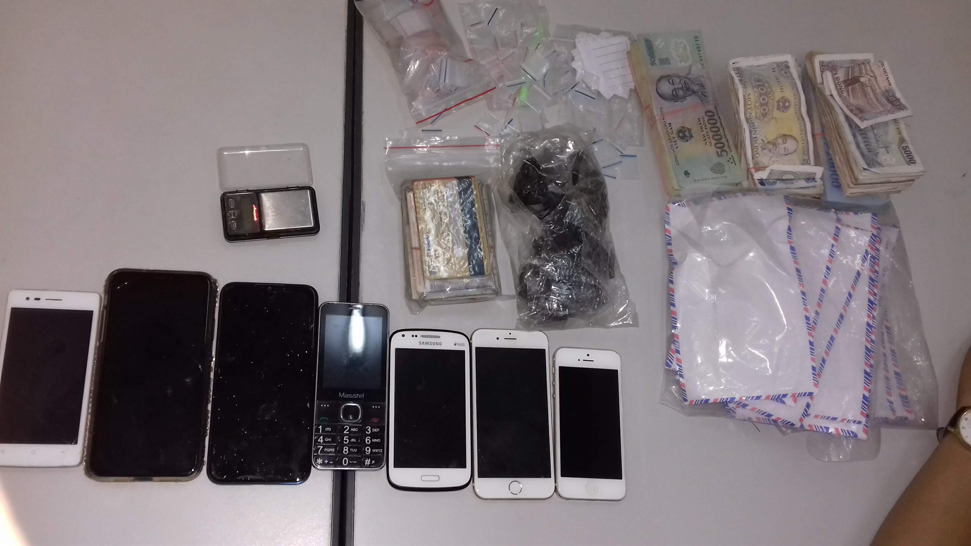 Tiến hành khám xét tại nhà, lực lượng công an còn thu giữ thêm 62 gói giấy và túi nilon bên trong chứa heroin và ma túy dạng đá, 01 cục tinh bột màu trắng (nghi là heroin); 01 cân điện tử; hơn 22 triệu đồng.