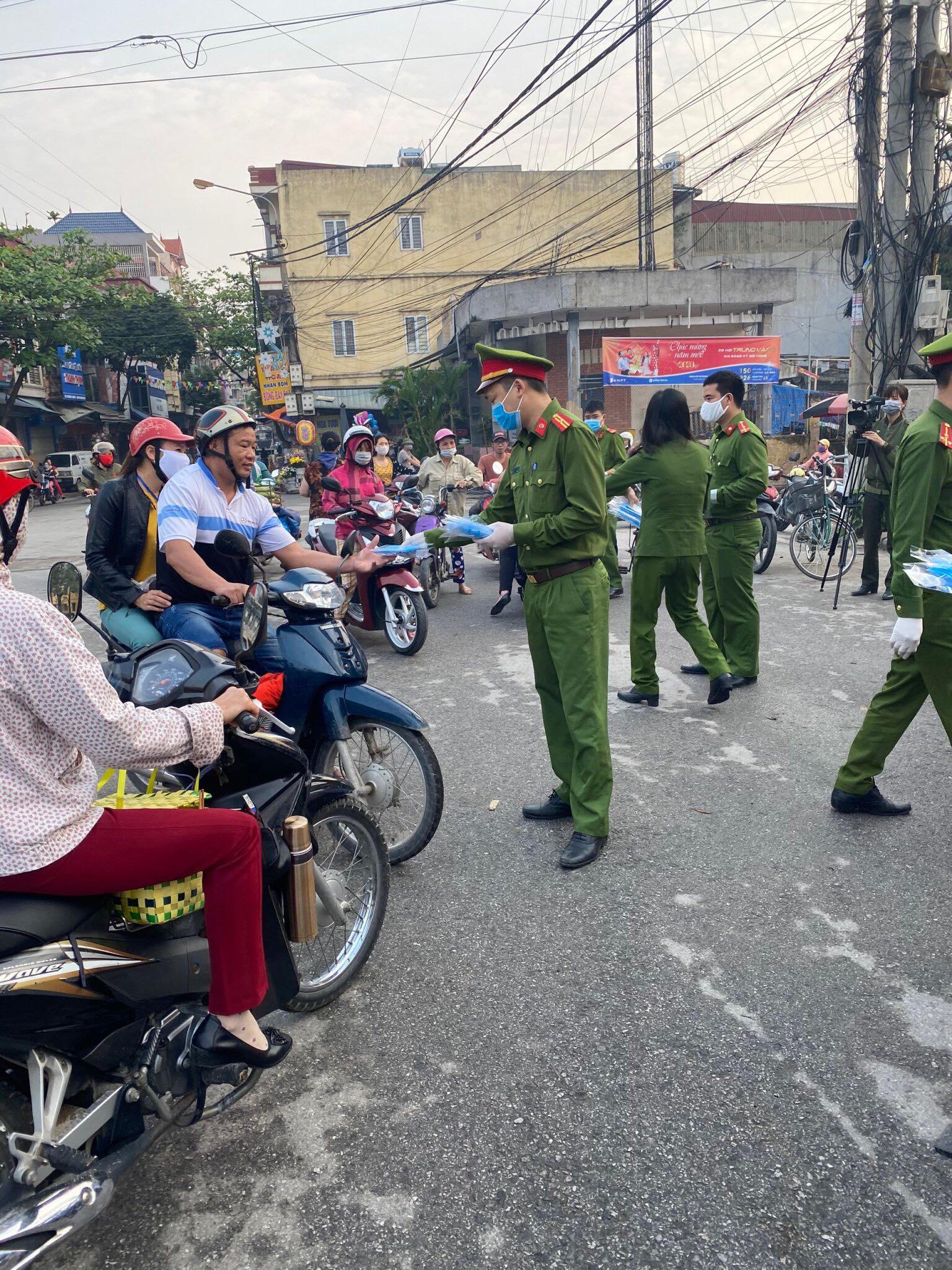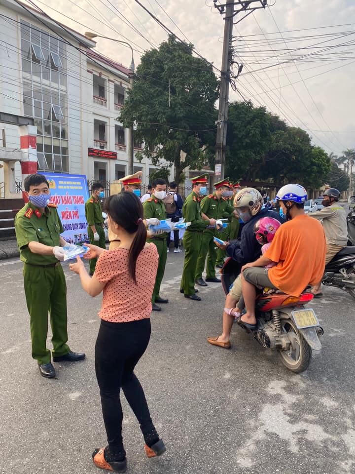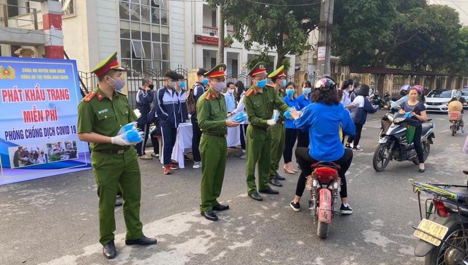Công an huyện Nam Sách tổ chức phát khẩu trang miễn phí cho người dân